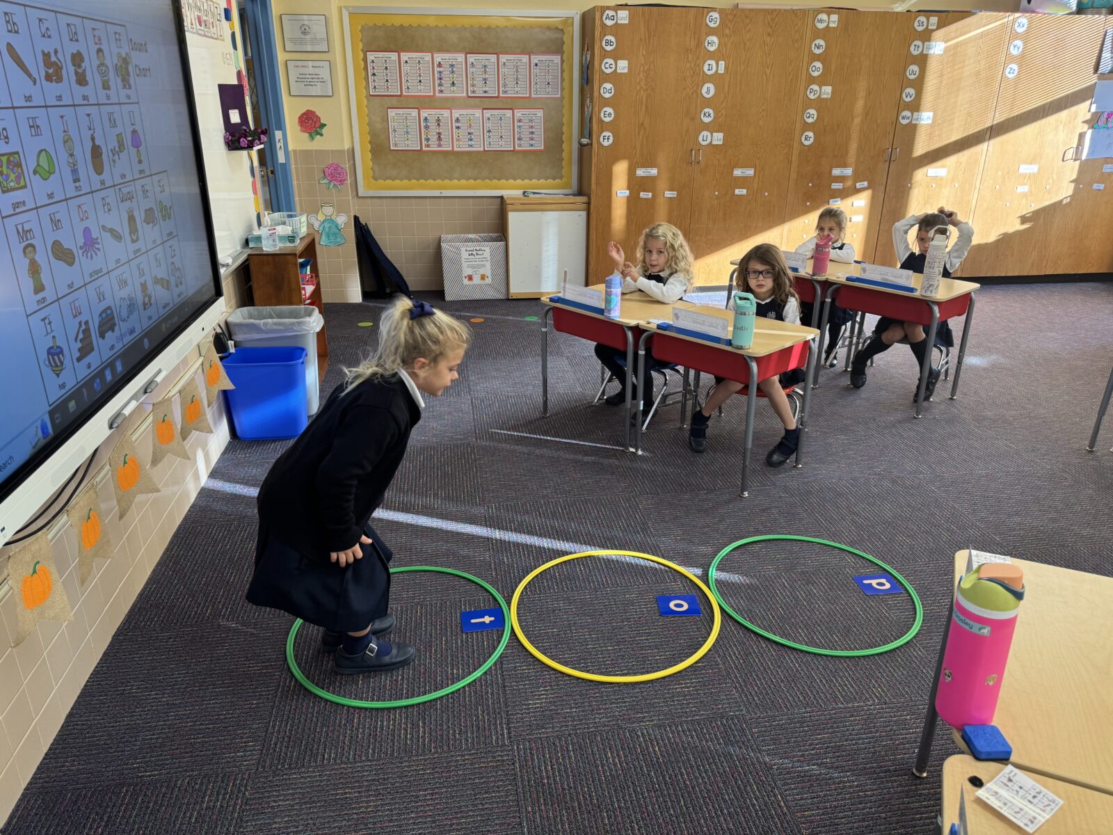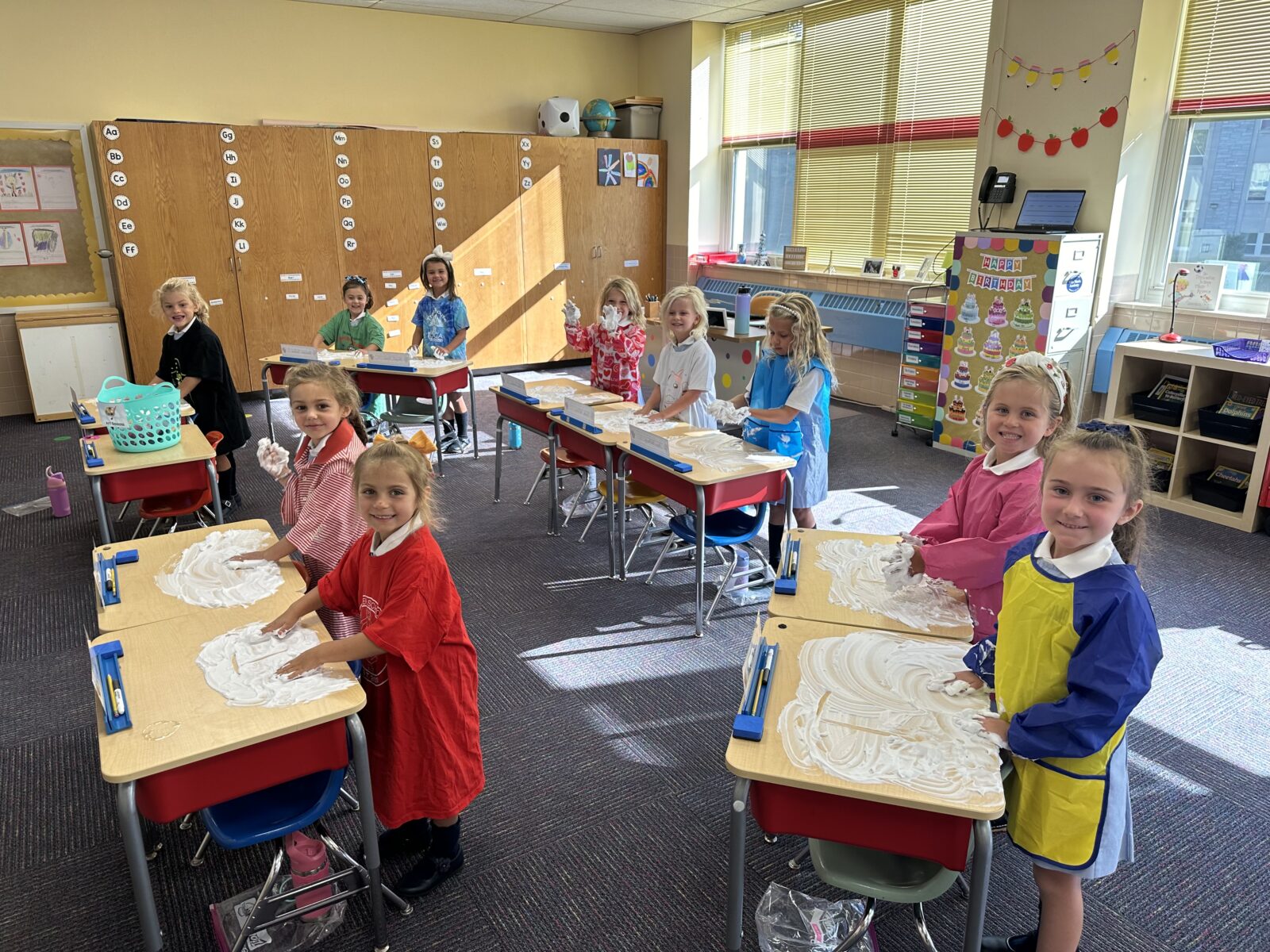 The basic foundation for skills such as reading and writing, as well as the concepts involved in language, math, science, world language and culture are taught in the full-day Kindergarten program.